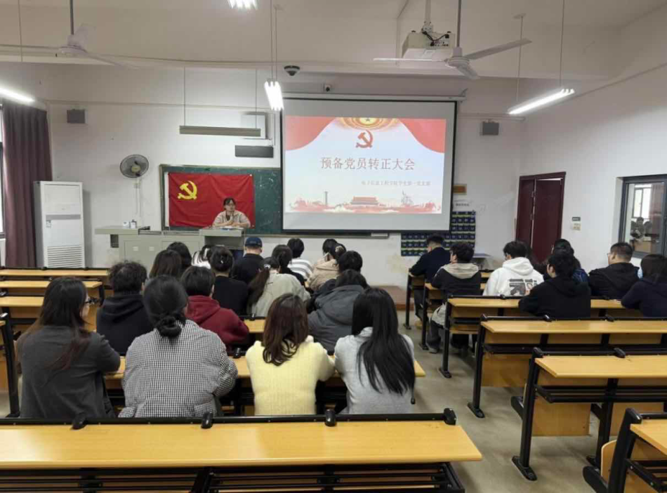 11月7日,电子信息工程学院学生第一党支部于二教2317教室召开2025年下半年预备党员转正大会。本次会议由支部书记吕黄梅同志主持。会议伊始,全体起立,奏唱国歌。接着,钟曼雨等4名预备党员分别从思想、学习、生活等方面依次汇报了在预备期间的个人情况,并表明了在党内担当作为的决心。入党介绍人曲安琪同志分别介绍了几位同志在预备期间的个人情况,并发表意见。随后,与会党员对4名同志进行充分讨论。经过无记名投票,表决结果同意钟曼雨等4名同志按期转正。最后,吕黄梅同志总结强调,顺利转正是新阶段新起点,全体党员要以更高标准严格要求自己,要遵守党纪,以艰苦奋斗、勇于担当的精神,全心全意为人民服务。